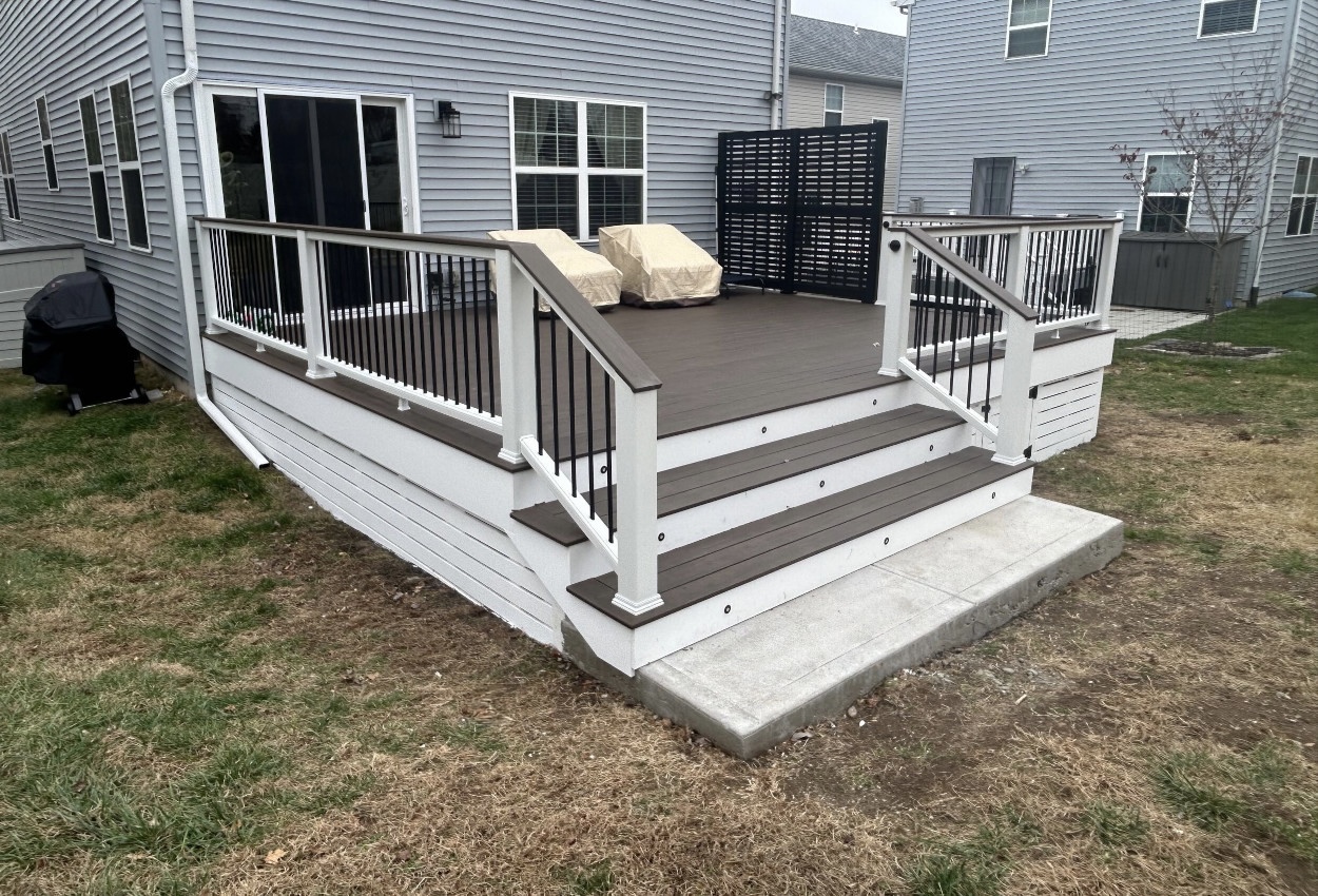 TimberTech Evolutions Legacy Mocha Flooring With Trex Transcend Railings And RDI Hideaway Privacy Rail with Boardwalk Black Panels With Custom Azek Skirting2